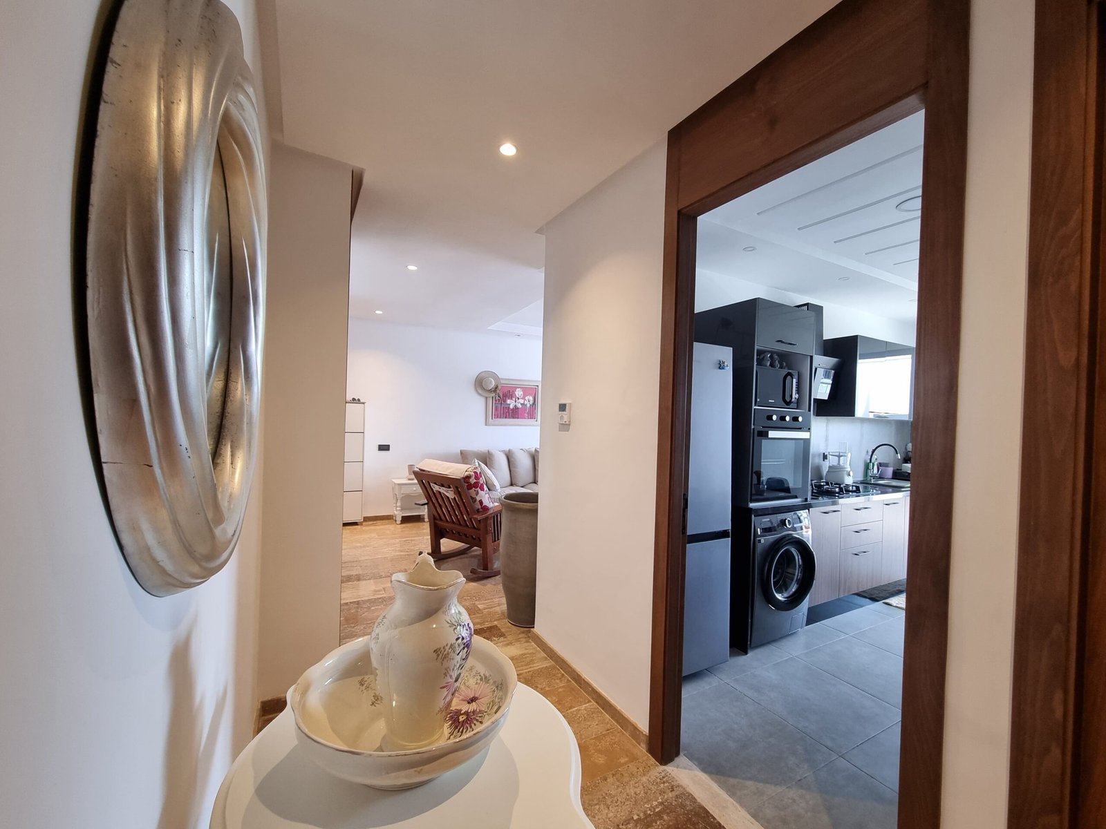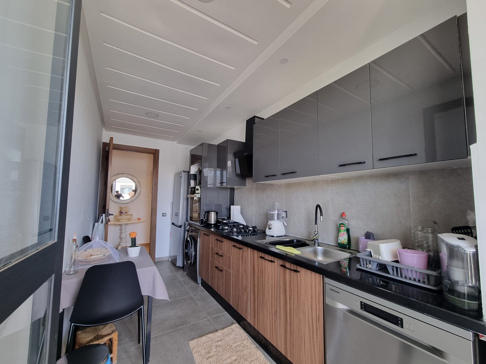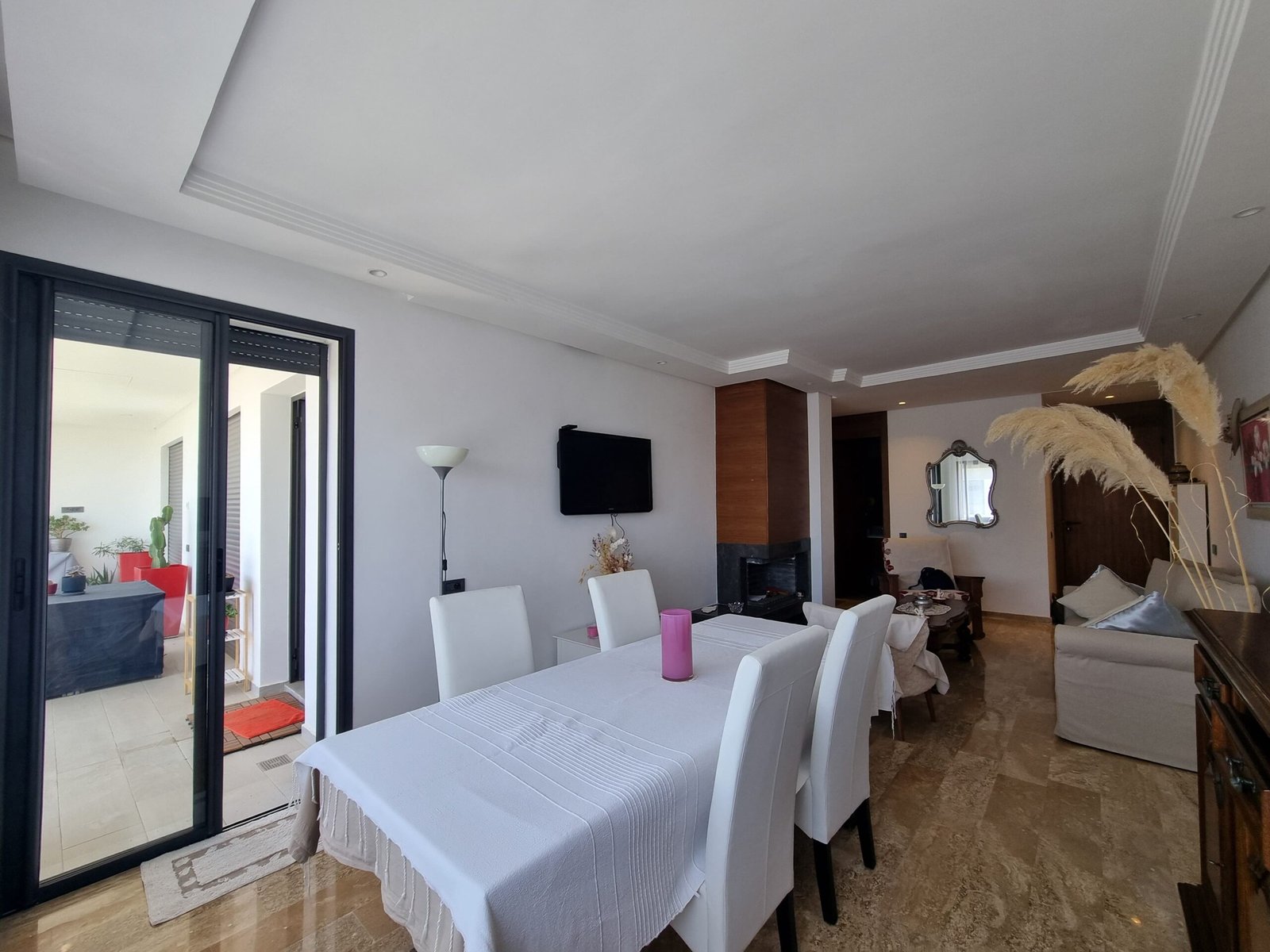 Situé dans une résidence sécurisée de standing à Dar Bouazza, cet appartement meublé de 113 m² habitables, dont 20 m² de terrasse, offre un cadre de vie idéal entre confort moderne, environnement calme et proximité de la plage. À seulement 10 minutes à pied d’une grande plage de sable, ce bien est parfait pour ceux qui souhaitent allier vie urbaine et atmosphère balnéaire.
