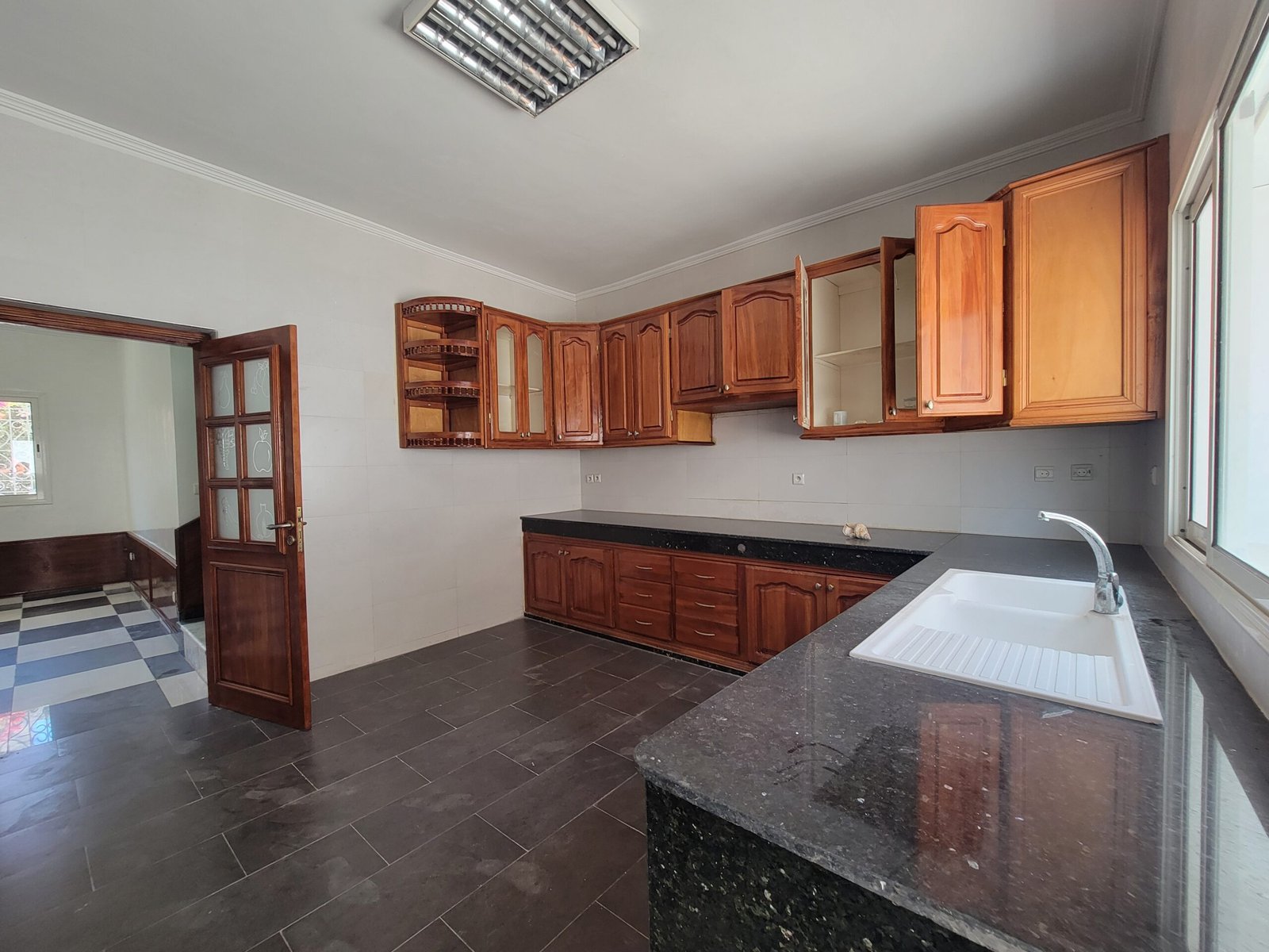 Au sous-sol, un garage couvert pouvant accueillir deux véhicules donne directement accès à une vaste cuisine moderne baignée de lumière naturelle grâce à des puits de lumière. Ce niveau comprend également deux chambres, un salon, ainsi que deux salles de bain, parfaits pour accueillir du personnel ou offrir un espace indépendant.