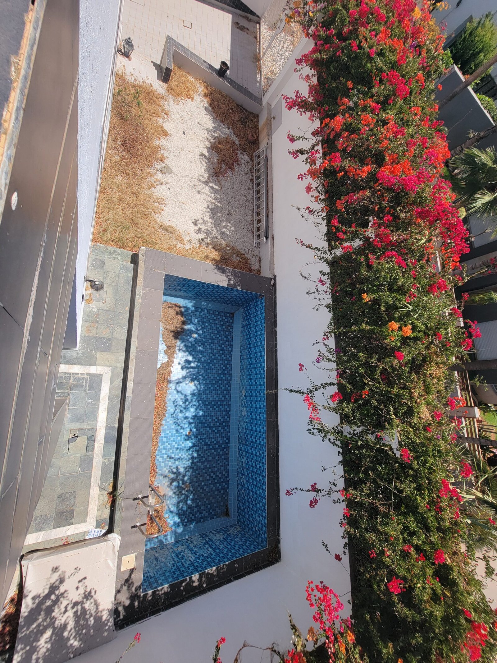 À l’extérieur, un jardin joliment aménagé entoure la maison et intègre une piscine privée, parfait pour se rafraîchir en toute tranquillité.