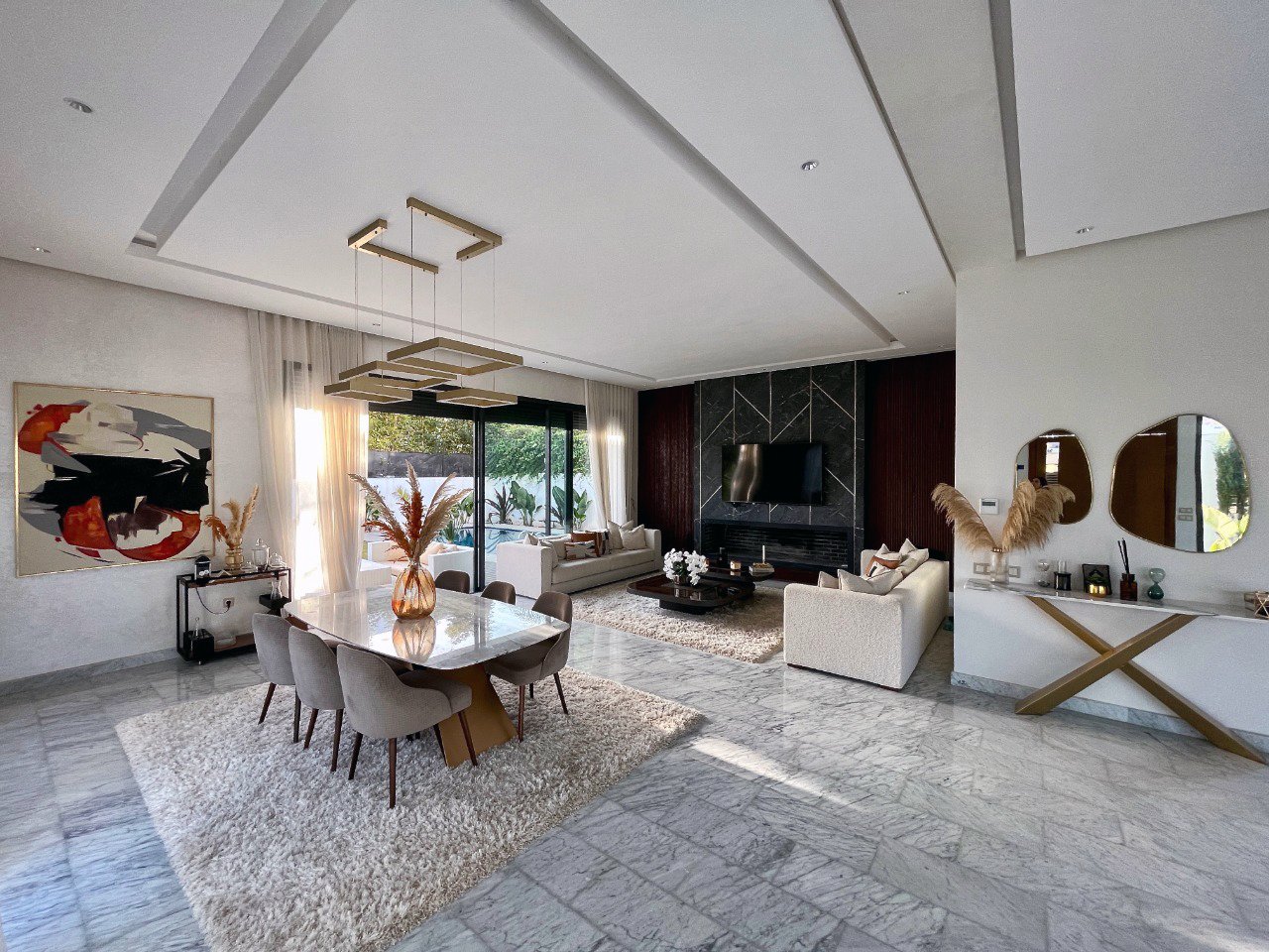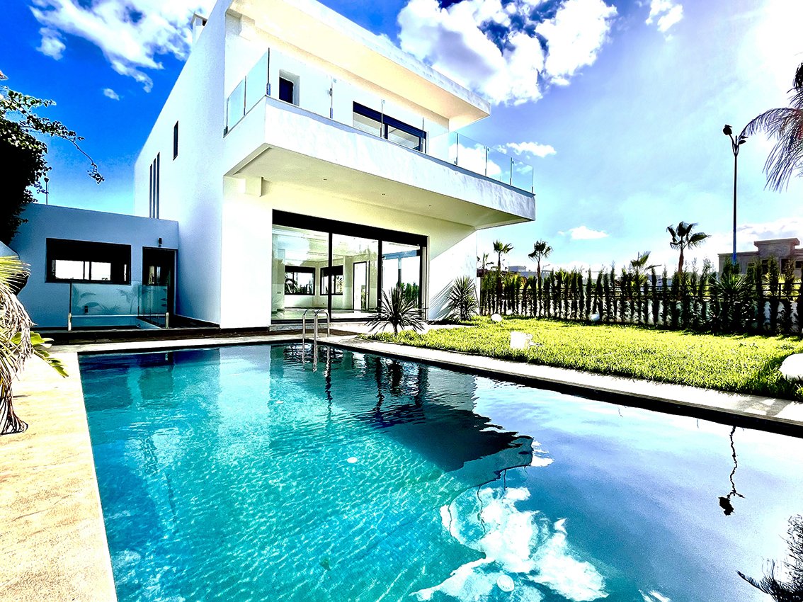 Découvrez cette superbe villa haut standing bâtie sur 608 m² de terrain, avec 500 m² construits sur 3 niveaux, offrant une luminosité unique grâce à ses grandes baies vitrées.